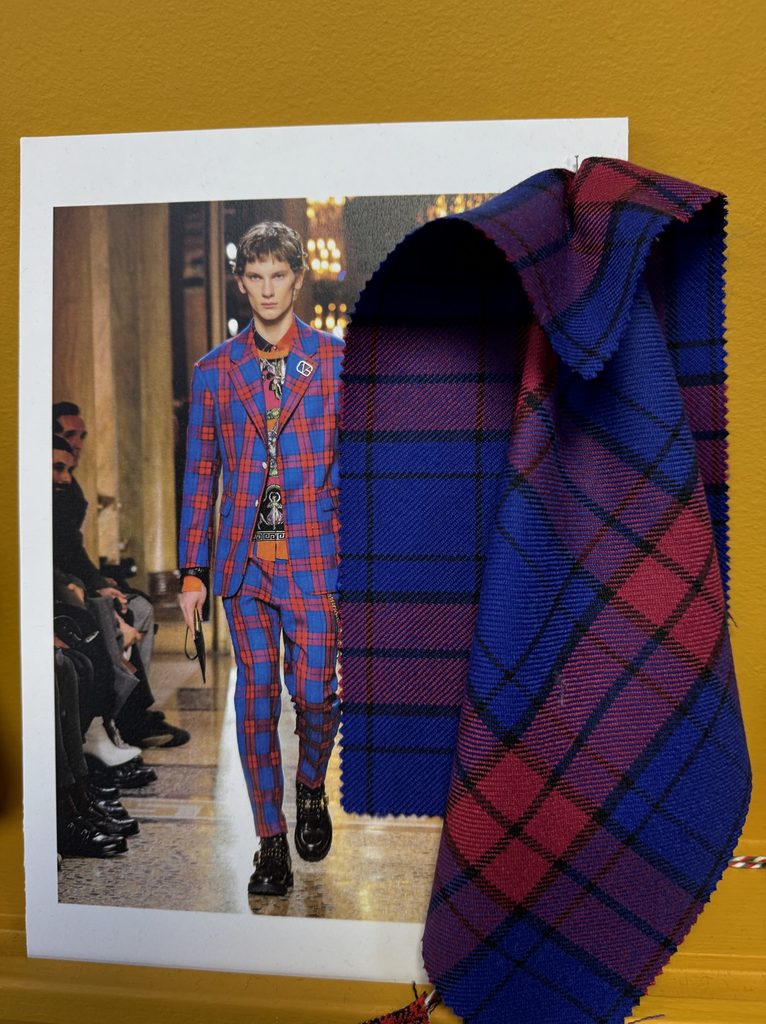 Over the past 100 years, fashion designers, both Scottish and international, have integrated high-quality Scottish textiles like tartan, tweed, and cashmere into their collections to celebrate Scottish heritage and craftsmanship. Most fashion houses have at some stage come to Scotland for inspiration and for our quality textiles. Scottish textiles I use in my designs are from Lovat of Hawick, Johnstons of Elgin, Isle Mill in Keith, Lochcarron of Scotland in Selkirk, Harris Tweed, Timorous Beasties in Glasgow and Bute Fabrics on the Isle of Bute.