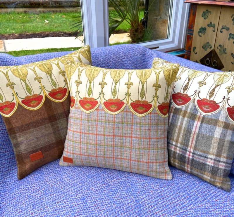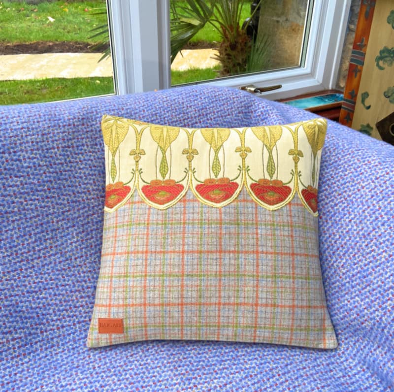 The front of the cushion cover is 100% British soft wool with appliqué Scottish Belle Époque pattern