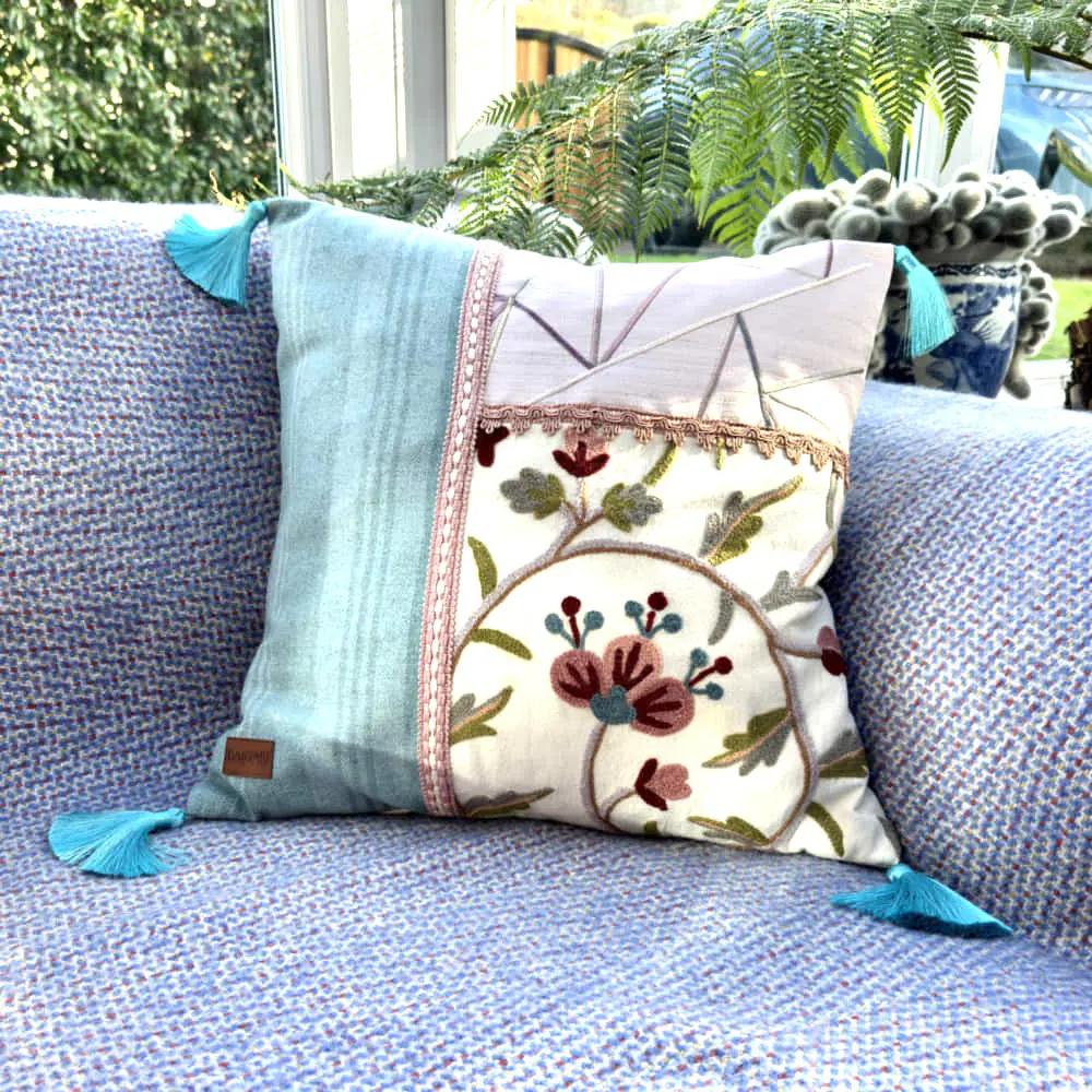 This beautiful handmade cushion design is inspired by the colours of Ochil hills of Scotland. Please contact me if would like to order more like this cushion.
