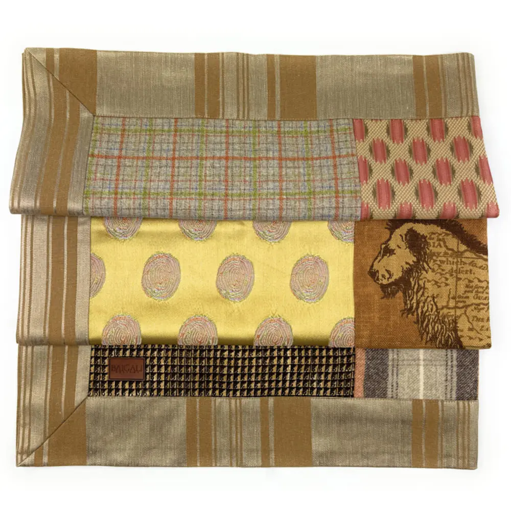 This beautiful throws contains 9 squares of mixed fabrics. Handmade in Edinburgh, Scotland using pure British & Scottish wool and other fabrics. Please contact me if you would like to commission a throw to your specific colour pallet and size.