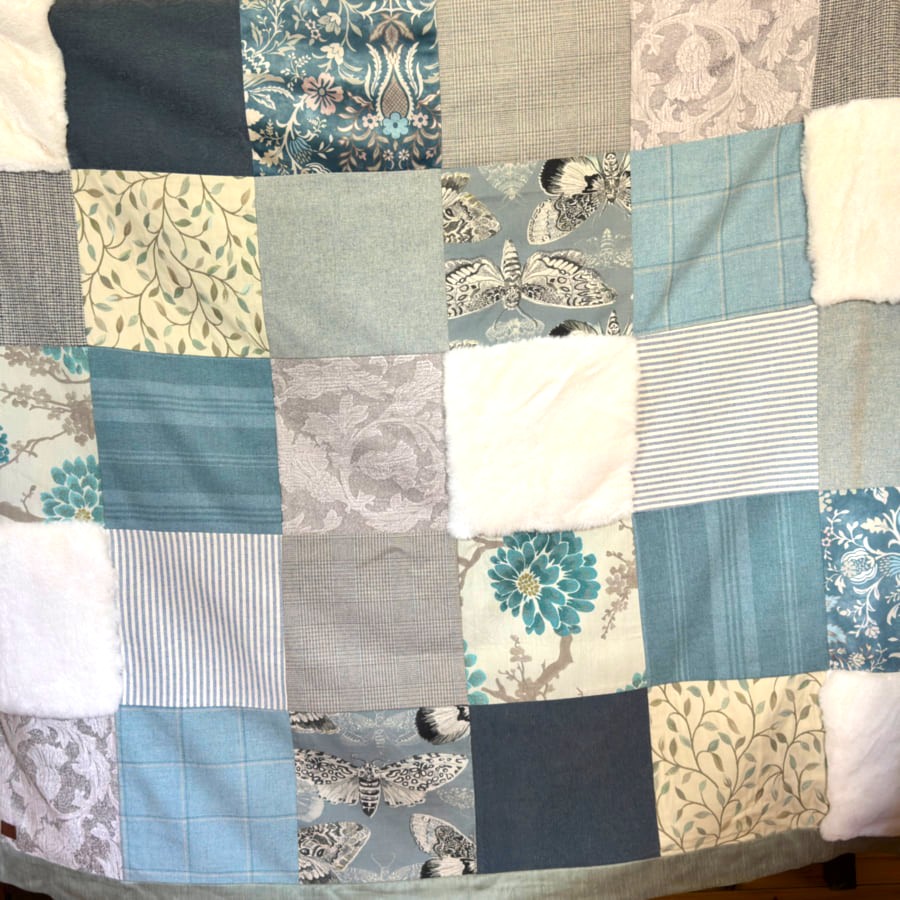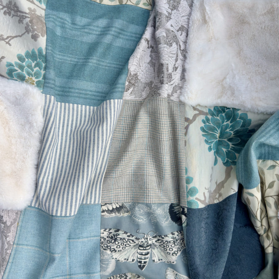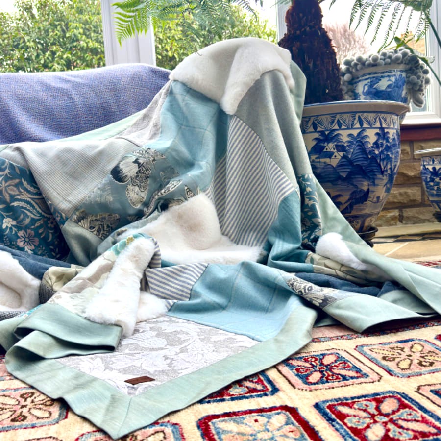 For this throw TL037 I have selected pure Scottish wool, soft faux fur, thistle velvet, plaid and demask fabrics. Framed and backed with a beautiful soft Scottish wool and silk mix.